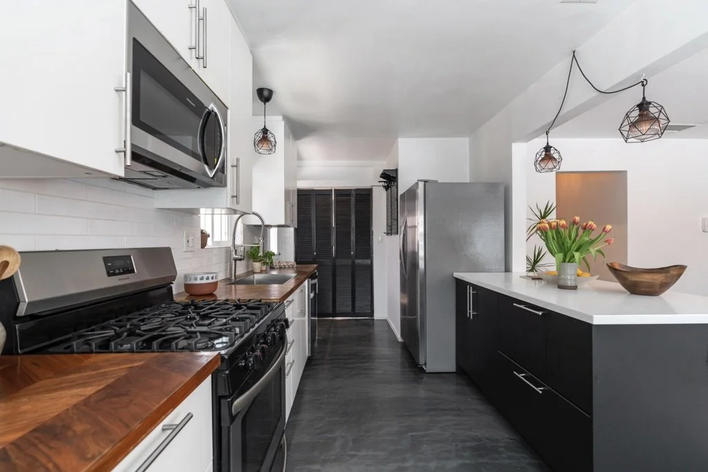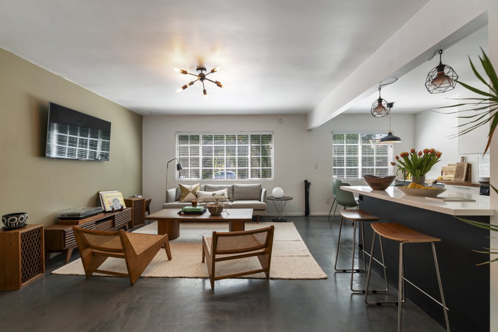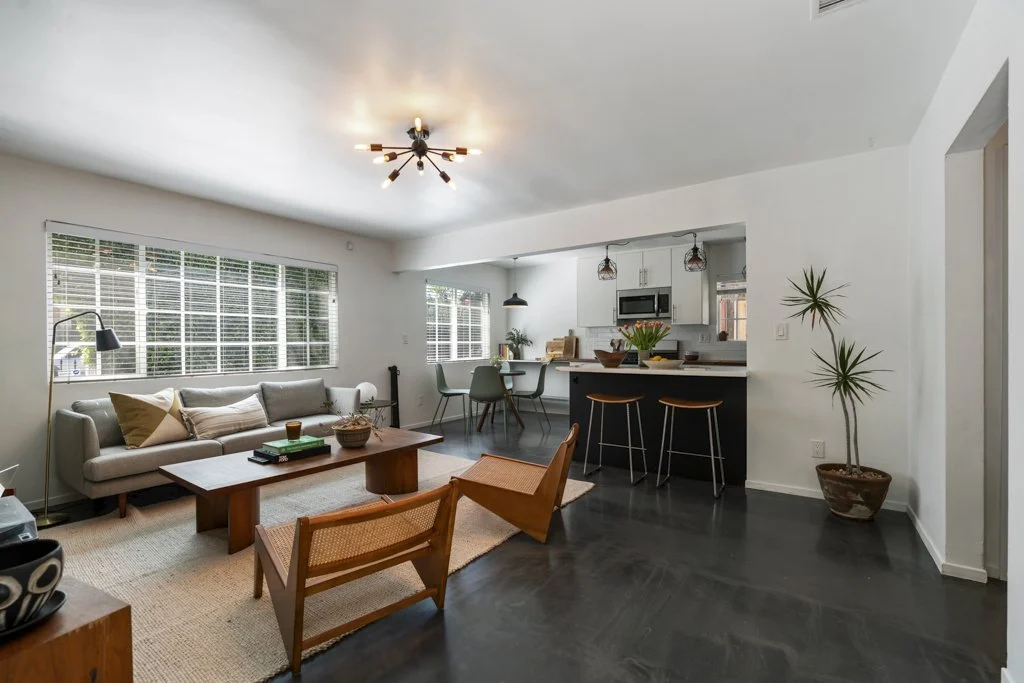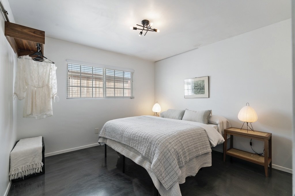 This magical Boyle Heights duplex feels like a little hidden world of its own, right in the heart of one of LA's most vibrant, soulful neighborhoods. Just minutes from Downtown, set on a 4,800 square foot lot with two separate buildings, this is one of those rare properties that actually lets you live the lifestyle you've been dreaming of. Both units will be delivered vacant, so you can move right in, rent one out, or finally create that creative space, whether it's a recording studio, dance studio, art room, or the ultimate work from home setup. The front home has that effortless, creative feel with beautiful natural light pouring in, polished concrete floors, and an open layout that flows from a remodeled kitchen right into the living space. Down the hall you'll find two bedrooms.